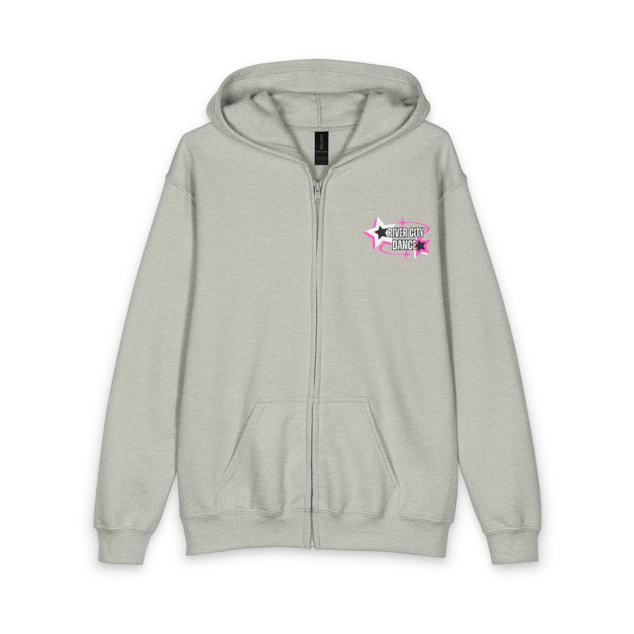 The Youth Heavy Blend Zipped Hoodie has a classic fit and features an unlined hood, plastic zipper, pouch pocket, and tear-away label. Made with fine yarns and new MVS Air spinning technology that improves the fabric by reducing pilling, enhancing durability, and creating a smoother printing surface.